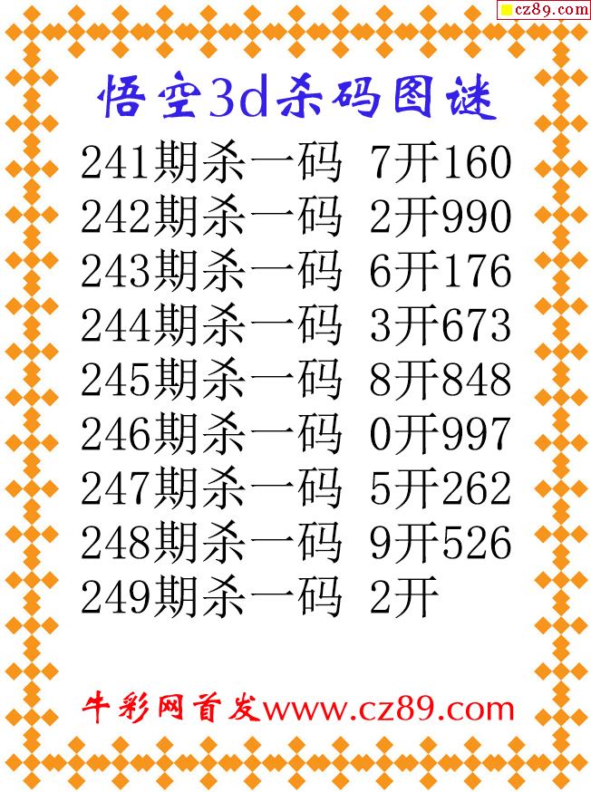 悟空杀码25249期3d原创图谜