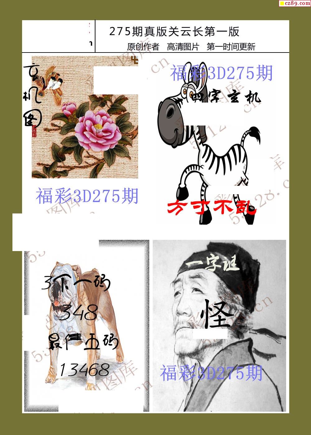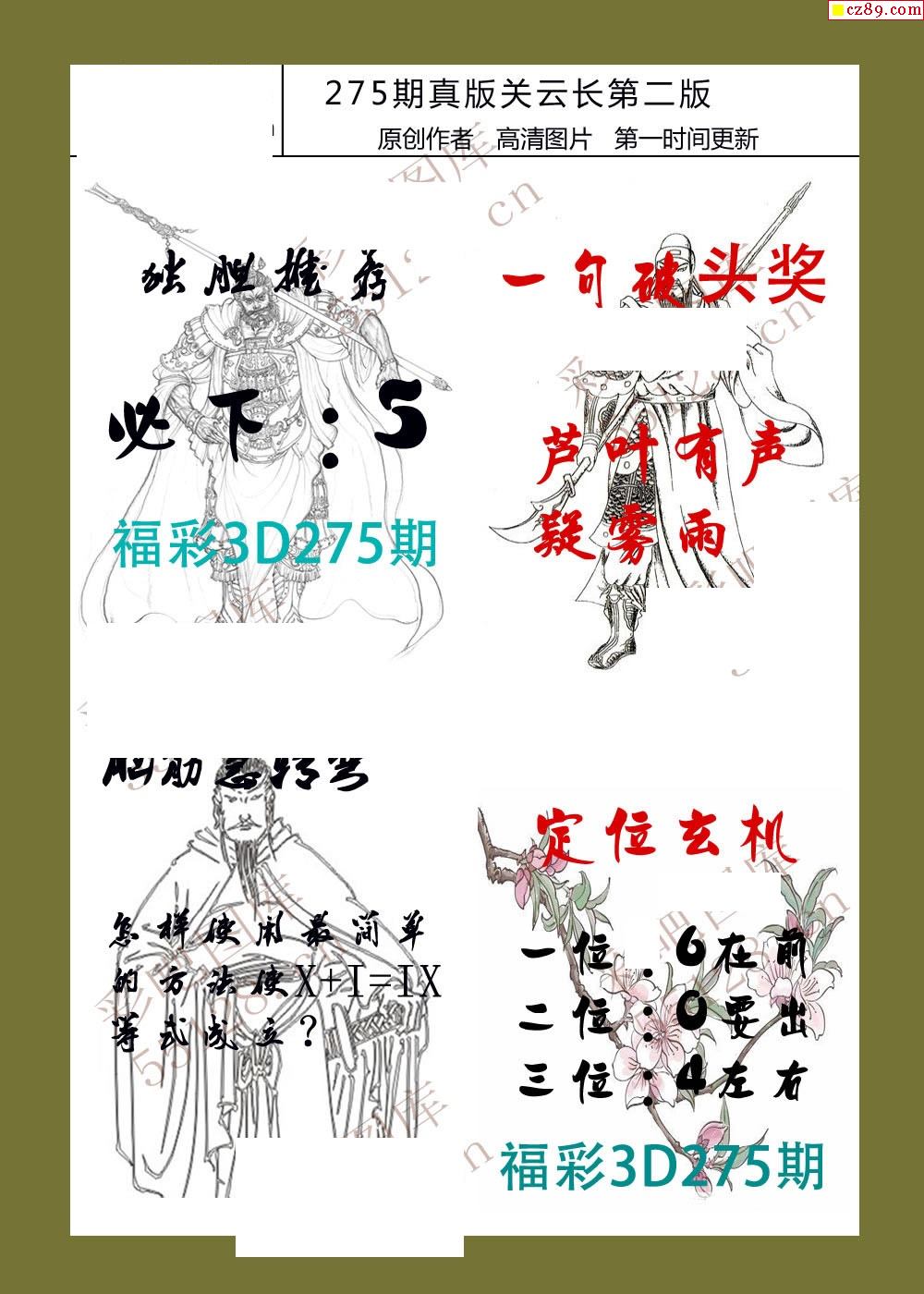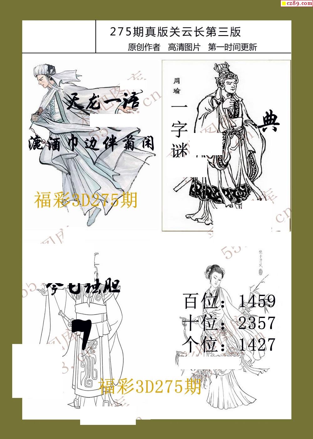25年275福彩3d真版关云长图谜